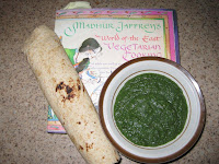 Anyway, the color reminded me of this recipe that Karin and I really enjoy. If you dare, here’s the recipe for Punjabi Mustard Greens based loosely on the recipe from the amazing cookbook “Madhur Jaffrey’s World of the East Vegetarian Cooking.” We affectionately call it ‘The iridescent green stuff.”